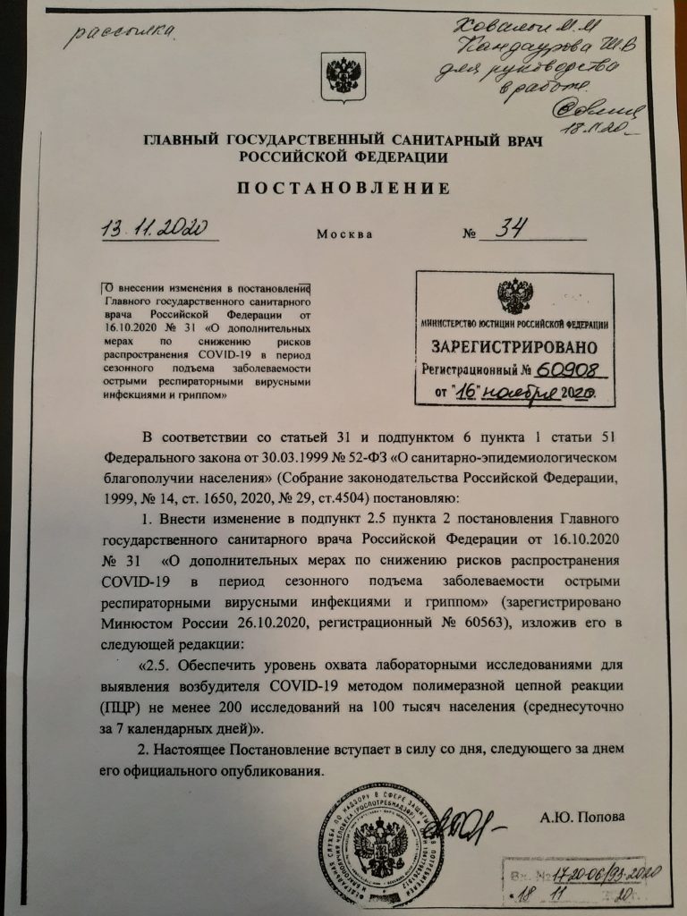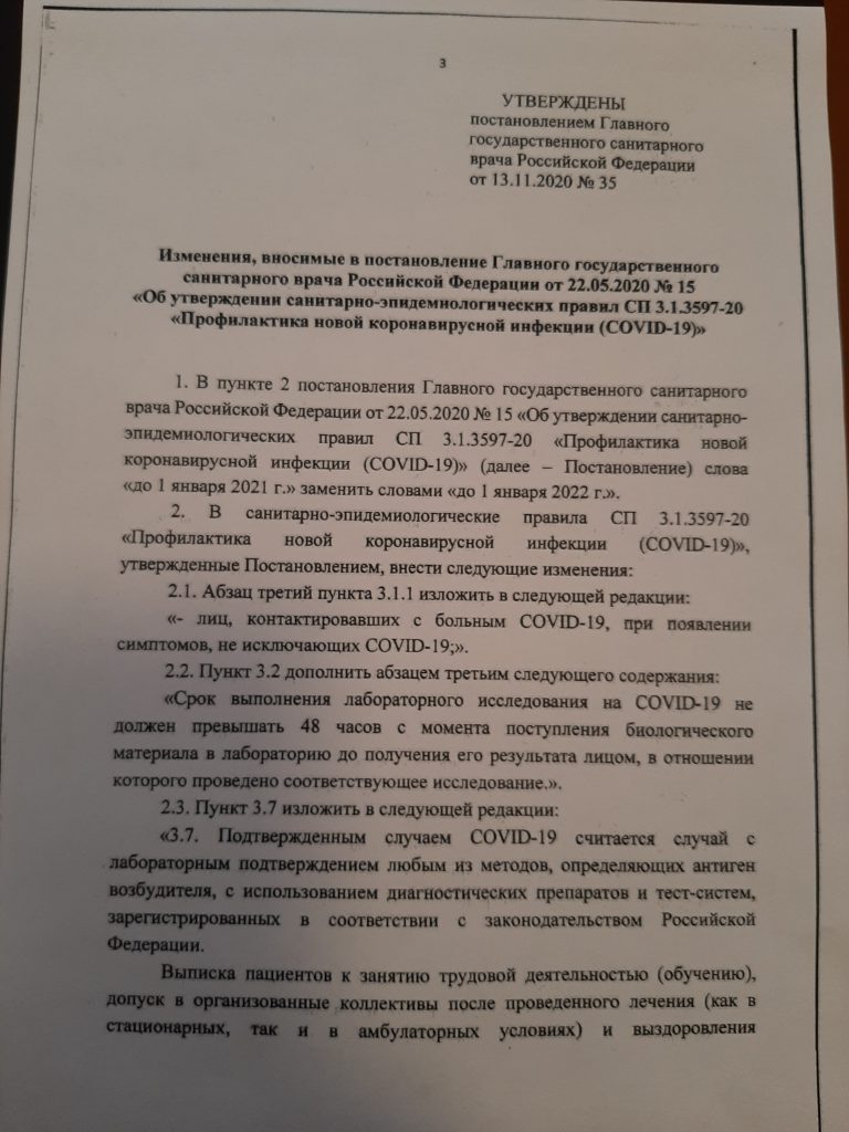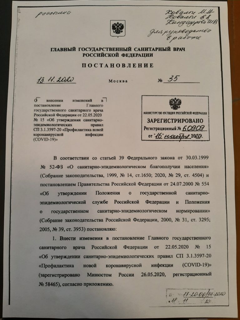 Новости 15.11.2020 / Постановление об изменений «О санитарно-эпидемиологическом благополучии населения»