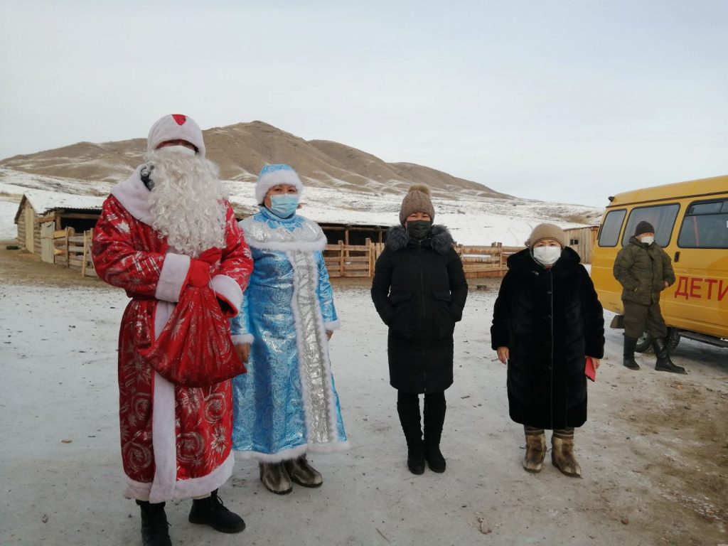 Новости С поздравлениями наступающего нового года побывали в гостях у детей участников проекта «Кыштаг для молодой семьи», «Чаа сорук» администрация МБОУ СОШ с. Ак-Дуруг и вручили детям сладкие подарки. 02.01.2021 /