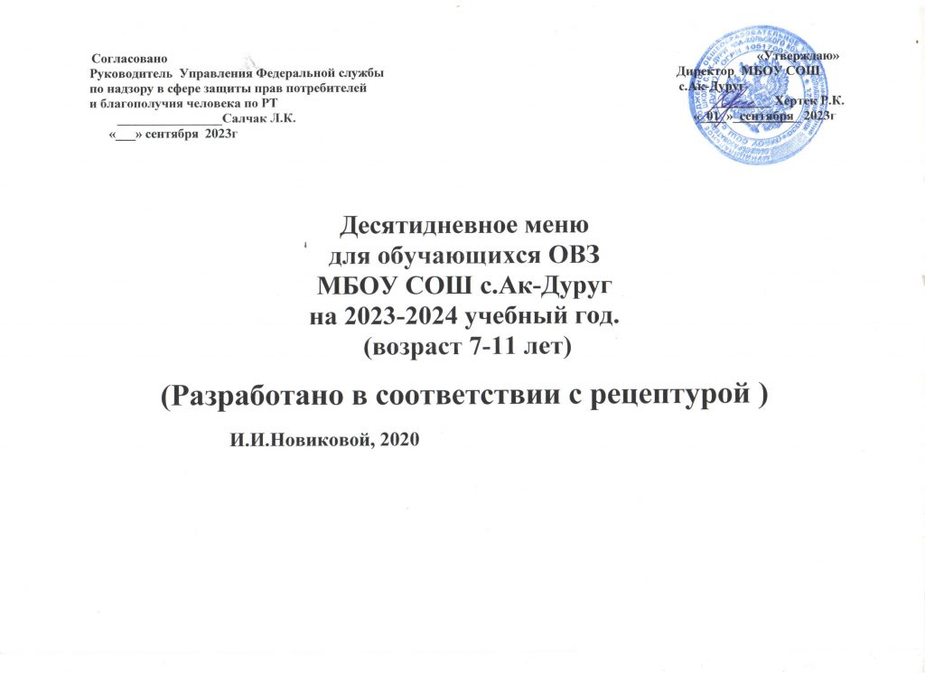 Меню для учащихся ОВЗ 1-4, 5-11 классов